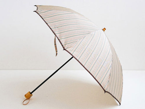 Shimatsumugi (Polyester Tsumugi Style) Folding Umbrella for Sun and Rain (Green) 50cm Ribs, 8 Ribs