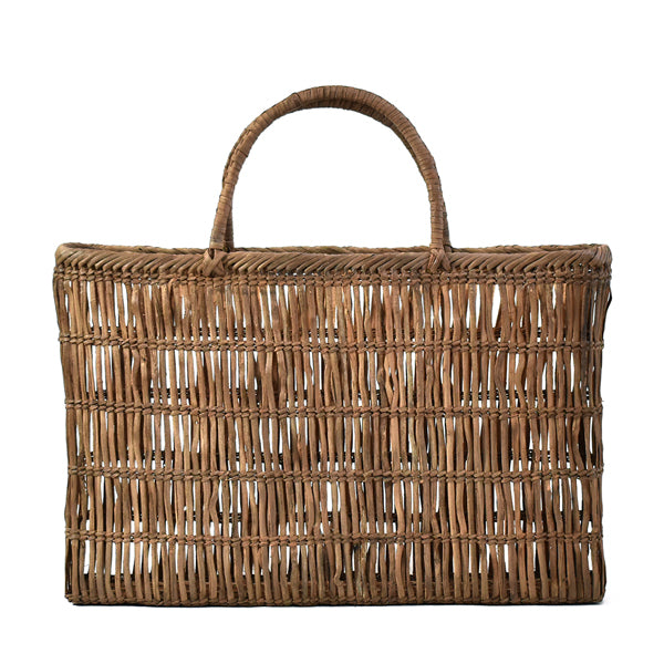This popular bag is made from wild grape vines, which become lustrous and softer with use, becoming more comfortable with the user. The openwork weave changes its appearance depending on what you put inside.