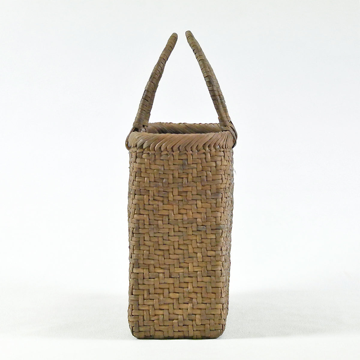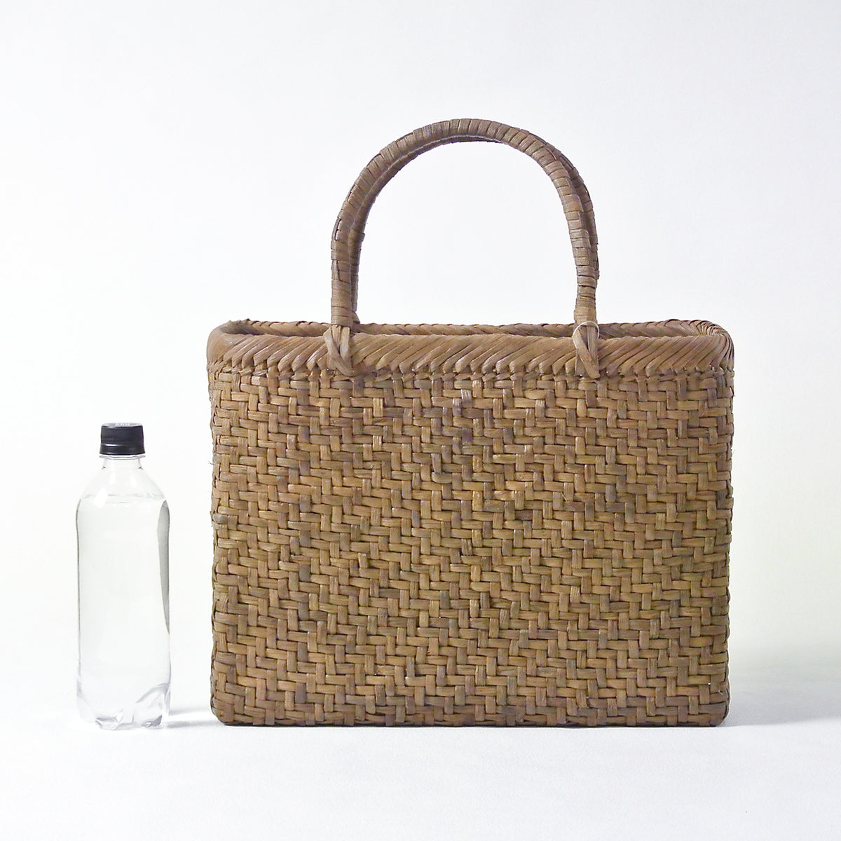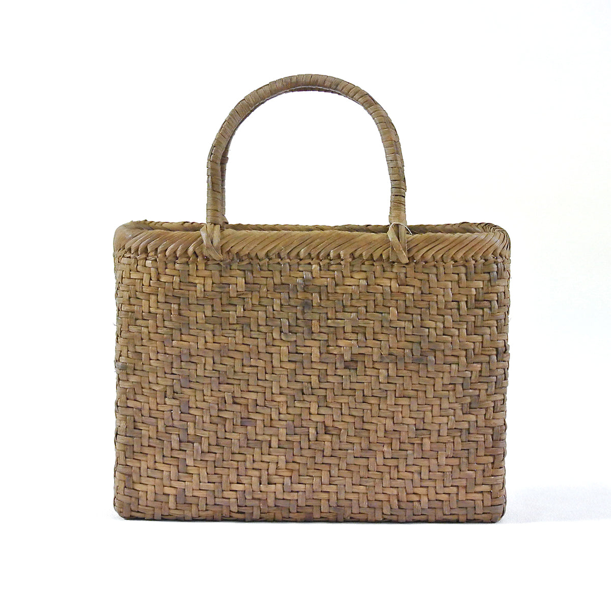 This large, box-shaped basket bag is crafted from wild grape vines, which become softer and more lustrous with use, becoming more comfortable to wear. Its wide gusset provides excellent storage capacity! It can easily fit A4 files, making it perfect for work, everyday shopping trips, and more.