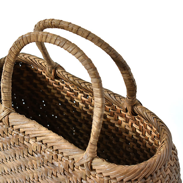 This basket bag is made from wild grape vines, which become softer and more lustrous with use, becoming more comfortable to wear. Its shape and size make it perfect for everyday use, and it's also recommended for those new to baskets.